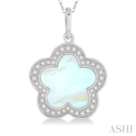 9MM Fancy Shell and 1/8 Ctw Single Cut Diamond Pendant in 14K White Gold with Chain