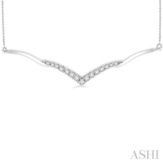1/4 Ctw Twisted V-Drop Round Cut Diamond Pendant With Box Chain in 14K White Gold