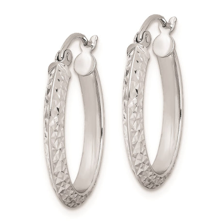 Sterling Silver Rhodium Plated Diamond Cut Oval Hoop Earrings