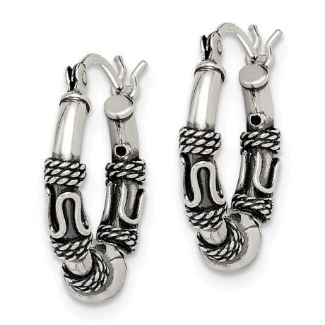 Sterling Silver RH-plated Satin Diamond-cut 2.5x18mm Twisted Hoop Earrings