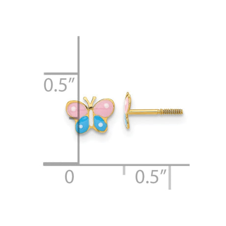 14k Madi K Polished Enameled Butterfly Screwback Post Earrings