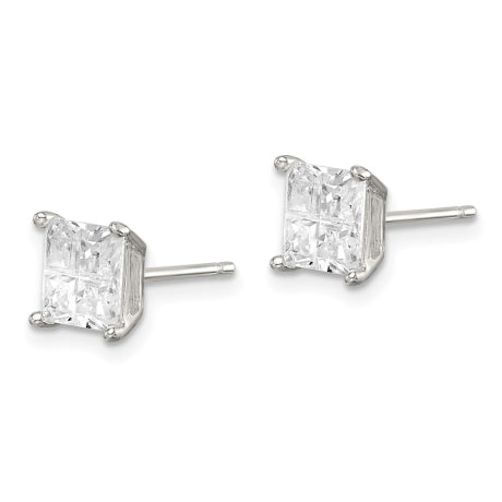 Sterling Silver 6mm Square Cross-cut CZ Basket Set Stud Earrings