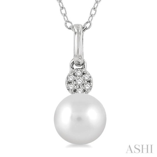 1/50 ctw Petite 6X6 MM Cultured Pearl and Round Cut Diamond Fashion Pendant With Chain in 10K White Gold