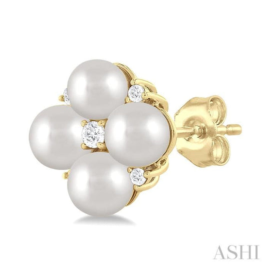 Vendor:Ashi1/10 ctw Floral 4X4 MM Cultured Pearls and Round Cut Diamond Fashion Stud Earring in 10K Yellow Gold