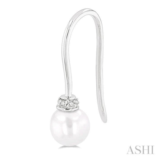 1/20 ctw Petite 5.5 MM Cultured Pearls and Round Cut Diamond Fashion Earring in 10K White Gold