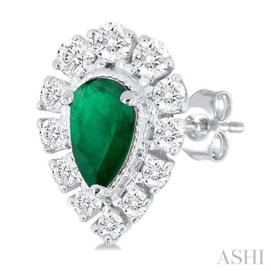 1/3 ctw Pear Cut 5x3 MM Emerald and Round Cut Diamond Precious Stud Earring in 14K White Gold