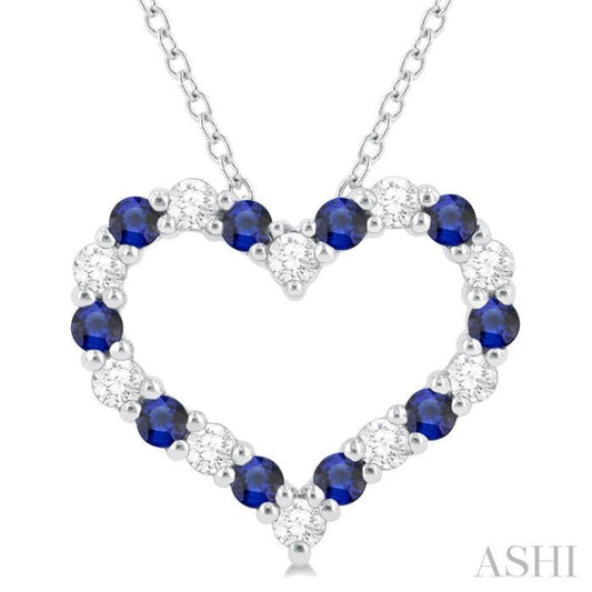 1/4 ctw Open Heart 1.80 MM Round Cut Sapphire and Round Cut Diamond Precious Fashion Pendant With Chain in 14K White Gold