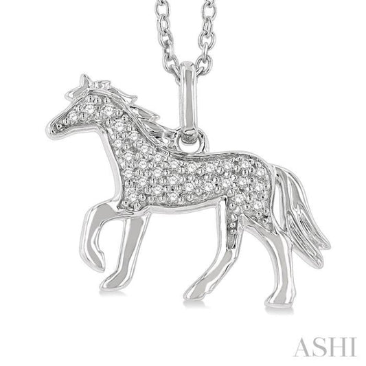 1/10 ctw Petite Horse Round Cut Diamond Fashion Pendant With Chain in 10K White Gold