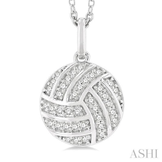 1/6 ctw Petite Volleyball Round Cut Diamond Fashion Pendant With Chain in 10K White Gold