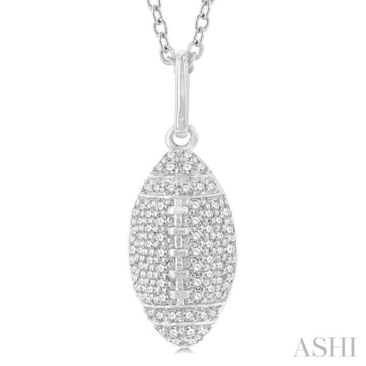 1/4 ctw Petite Football Round Cut Diamond Fashion Pendant With Chain in 10K White Gold