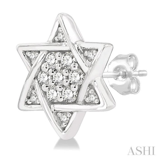 1/6 ctw Petite Star of David Round Cut Diamond Fashion Stud Earring in 10K White Gold