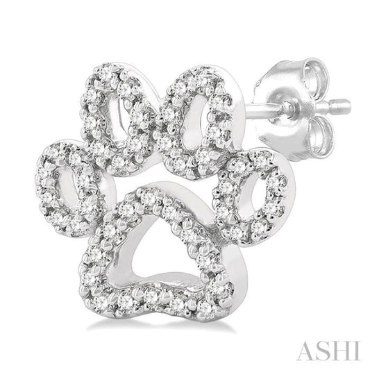 1/4 ctw Petite Dog Paw Round Cut Diamond Fashion Stud Earring in 10K White Gold
