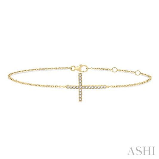 1/8 ctw Petite Reclined Cross Round Cut Diamond Fashion Bracelet in 10K Yellow Gold