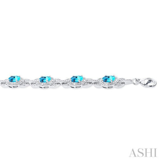 1/10 ctw Oval Cut 7x5MM Blue Topaz and Round Cut Diamond Semi Precious Bracelet in Sterling Silver