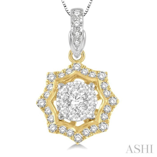1/4 ctw Star Lattice Lovebright Round Cut Diamond Pendant With Chain in 14K White and Yellow Gold