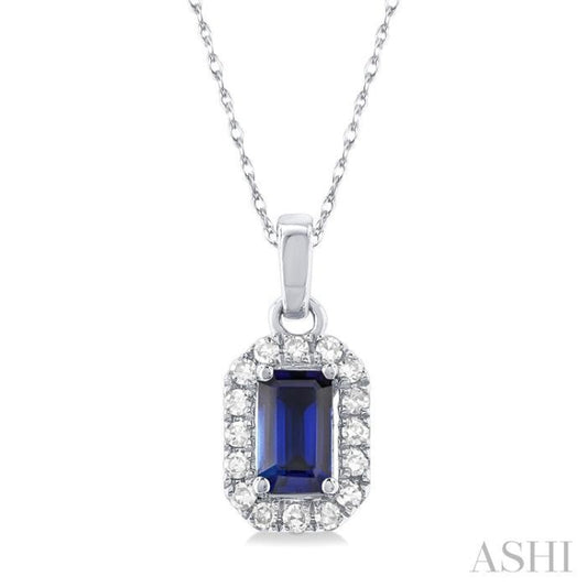 1/20 ctw Round Cut Diamond and 5X3MM Octagonal Shape Sapphire Halo Precious Pendant with Chain in 14K White Gold
