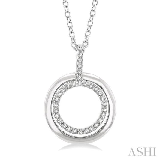 1/10 ctw Petite Twin Circle Round Cut Diamond Fashion Pendant With Chain in 10K White Gold