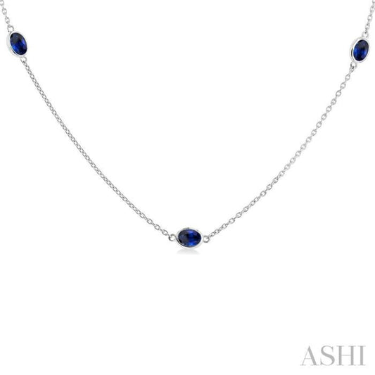 4X3MM Oval Cut Sapphire Precious Station Necklace in 14K White Gold
