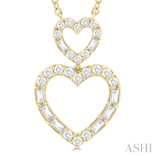 1/3 ctw Twin Heart Fusion Baguette and Round Cut Diamond Necklace in 10K Yellow Gold