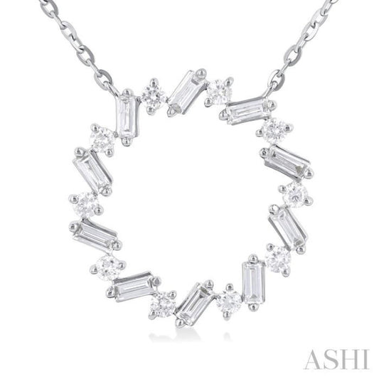 3/8 ctw Circle Baguette and Round Cut Diamond Scatter Necklace in 10K White Gold
