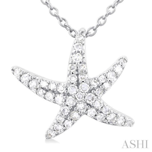 1/5 ctw Petite Starfish Round Cut Diamond Fashion Pendant With Chain in 10K White Gold