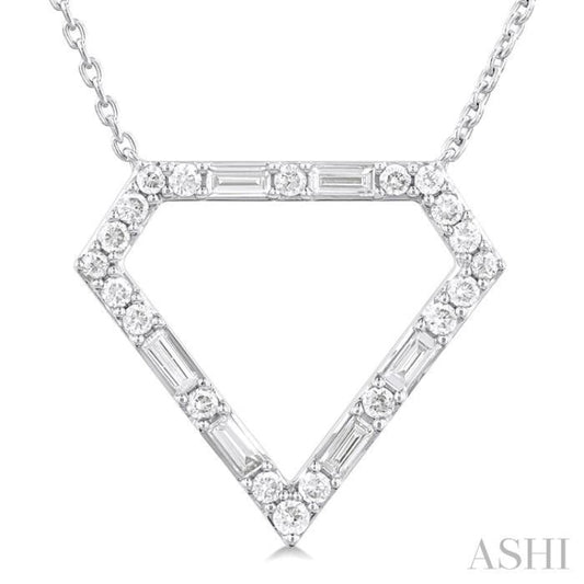 1/3 ctw Geometric Fusion Baguette and Round Cut Diamond Fashion Necklace in 10K White Gold