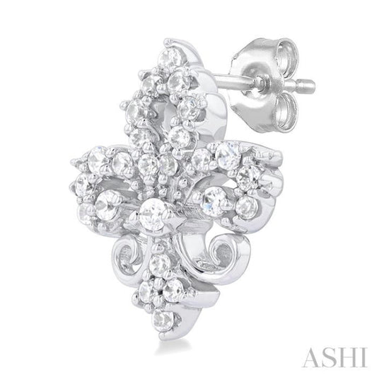 1/5 ctw Petite Fleur De Lis Round Cut Diamond Fashion Stud Earring in 10K White Gold