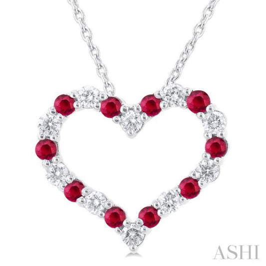 1/4 ctw Open Heart 1.80 MM Round Cut Ruby and Round Cut Diamond Precious Fashion Pendant With Chain in 14K White Gold