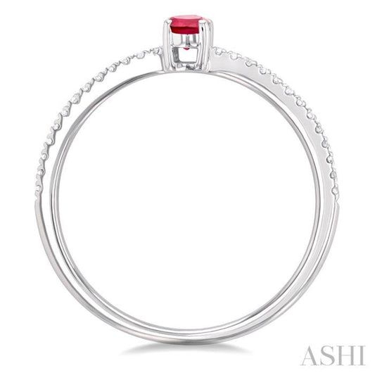1/10 ctw Petite 5x3 MM Oval Cut Ruby and Round Cut Diamond Precious Fashion Ring in 10K White Gold