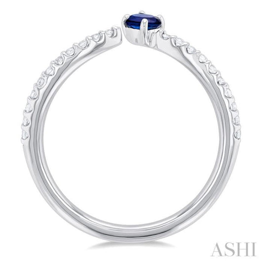 1/10 ctw Petite 4X3 MM Oval Cut Sapphire and Round Cut Diamond Precious Fashion Ring in 10K White Gold