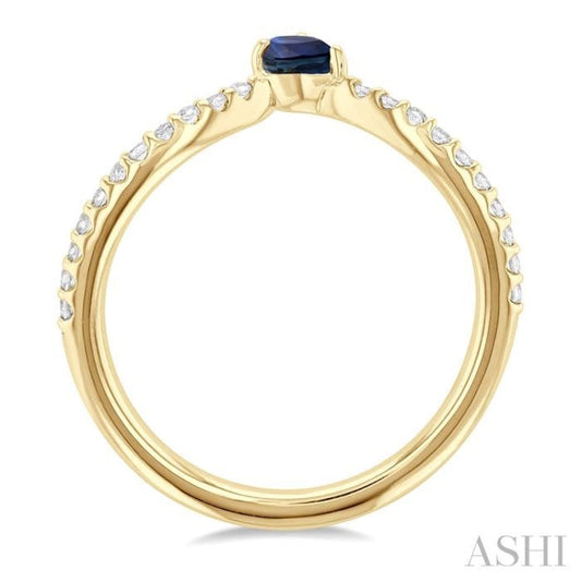 1/10 ctw Petite 4X3 MM Pear Cut Sapphire and Round Cut Diamond Precious Fashion Ring in 10K Yellow Gold