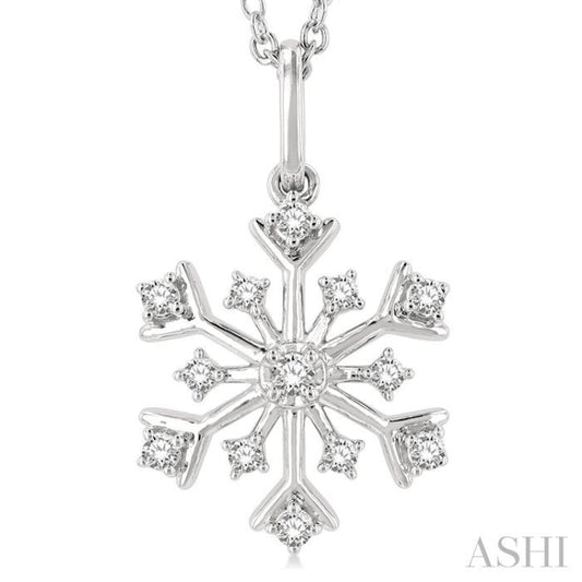 1/6 ctw Petite Snowflake Round Cut Diamond Fashion Pendant With Chain in 10K White Gold