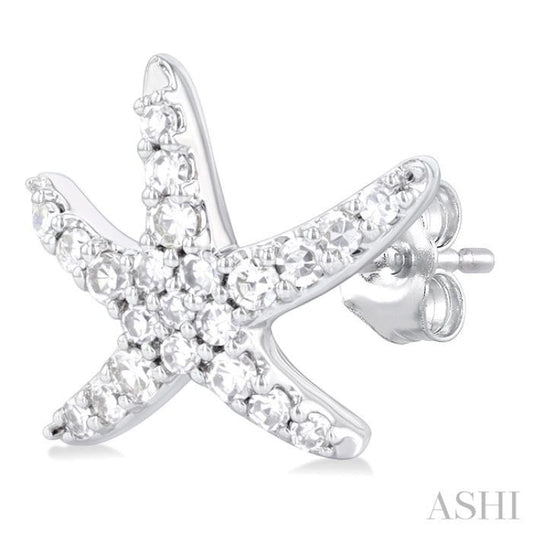 1/5 ctw Petite Starfish Round Cut Diamond Fashion Stud Earring in 10K White Gold