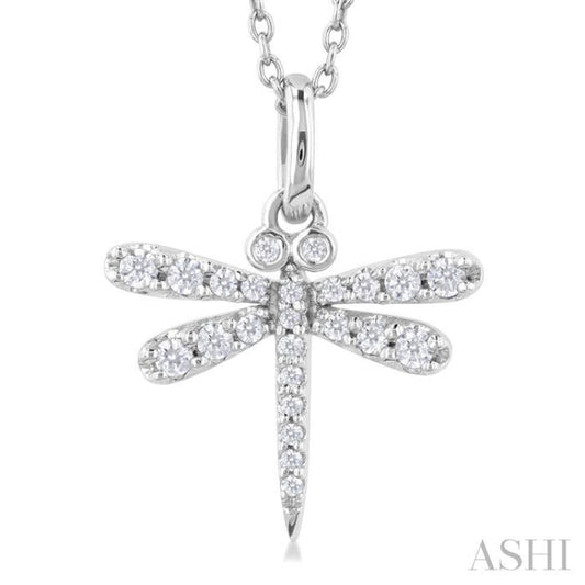 1/6 ctw Petite Dragonfly Round Cut Diamond Fashion Pendant With Chain in 10K White Gold
