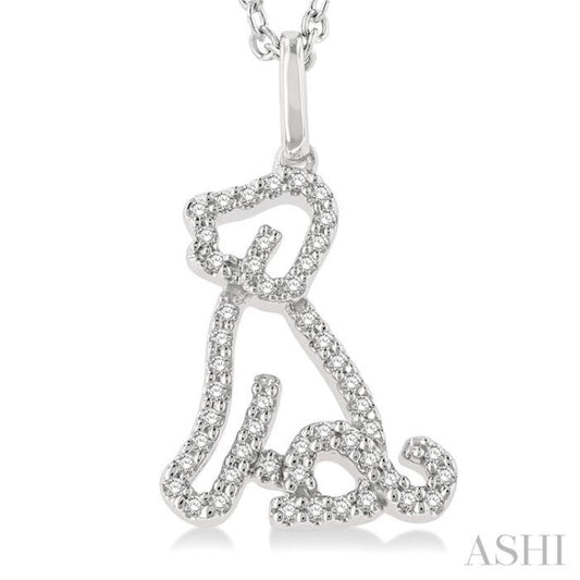1/6 ctw Petite Sitting Dog Round Cut Diamond Fashion Pendant With Chain in 10K White Gold