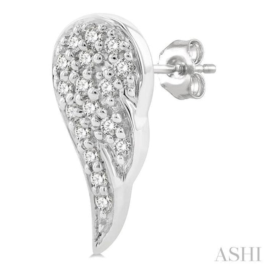1/10 ctw Petite Angel Wings Round Cut Diamond Fashion Stud Earring in 10K White Gold