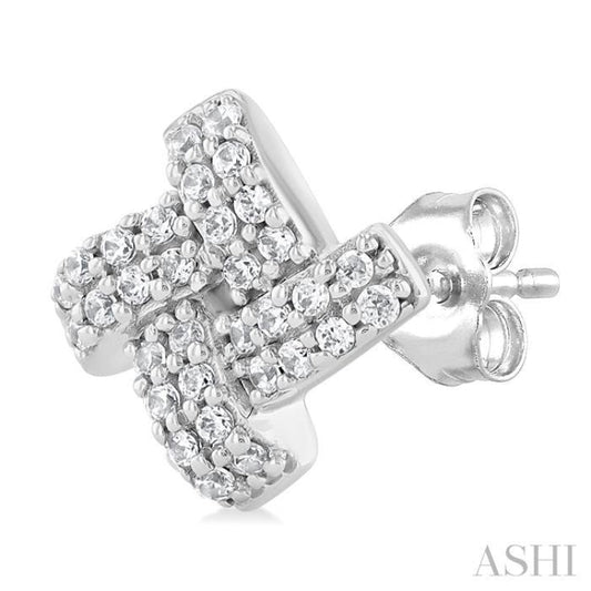 1/5 ctw Petite Pinwheel Round Cut Diamond Fashion Stud Earring in 10K White Gold