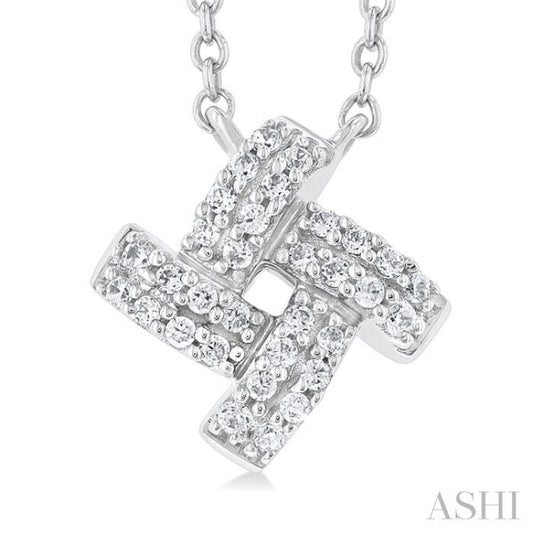 1/8 ctw Petite Pinwheel Round Cut Diamond Fashion Pendant With Chain in 10K White Gold