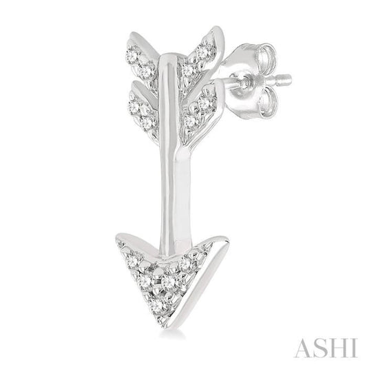 1/10 ctw Petite Arrow Round Cut Diamond Fashion Stud Earring in 10K White Gold