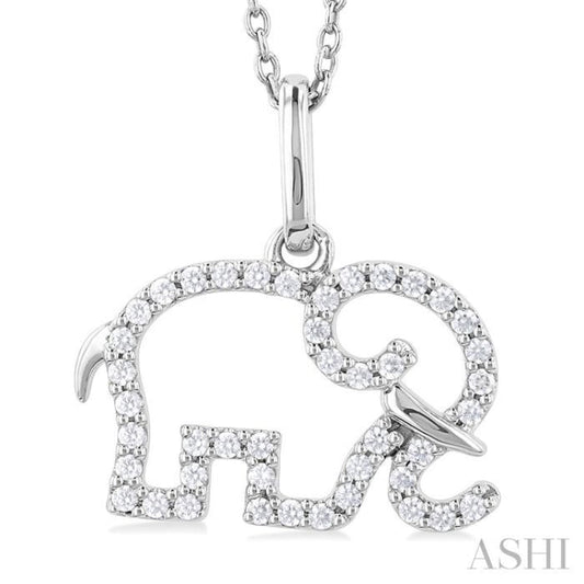 1/6 ctw Petite Tusked Elephant Frame Round Cut Diamond Fashion Pendant With Chain in 10K White Gold