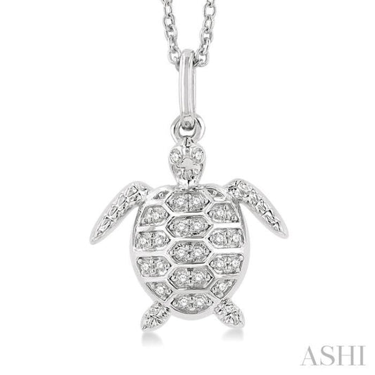 1/10 ctw Petite Sealife Turtle Round Cut Diamond Fashion Pendant With Chain in 10K White Gold