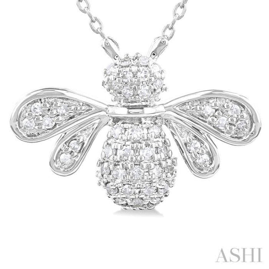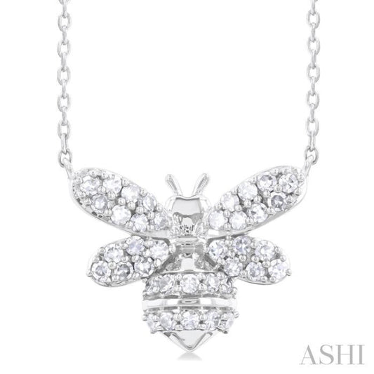1/4 ctw Petite Bumble Bee Round Cut Diamond Fashion Pendant With Chain in 10K White Gold