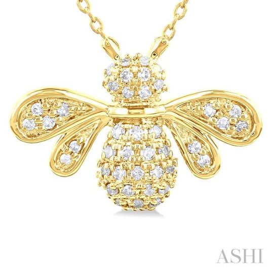 1/4 ctw Petite Bumble Bee Round Cut Diamond Fashion Pendant With Chain in 10K Yellow Gold