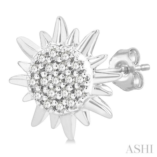 1/8 ctw Petite Sun Round Cut Diamond Fashion Stud Earring in 10K White Gold