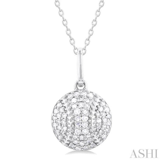 1/5 ctw Petite Baseball Round Cut Diamond Fashion Pendant With Chain in 10K White Gold