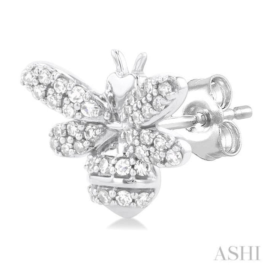 1/3 ctw Petite Bumble Bee Round Cut Diamond Fashion Stud Earring in 10K White Gold