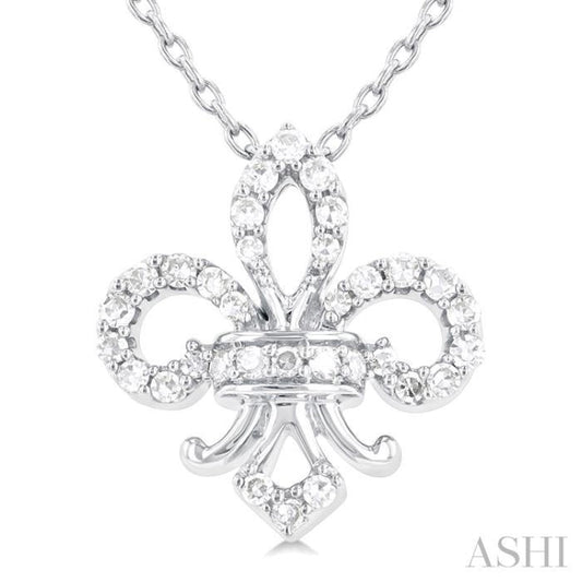 1/6 ctw Petite Fleur De Lis Round Cut Diamond Fashion Pendant With Chain in 10K White Gold