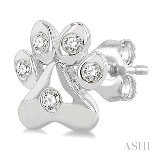 1/10 ctw Petite Dog Paw Round Cut Diamond Fashion Stud Earring in 10K White Gold