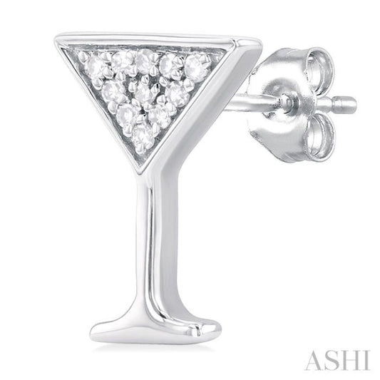 1/10 ctw Petite Martini Glass Round Cut Diamond Fashion Stud Earring in 10K White Gold