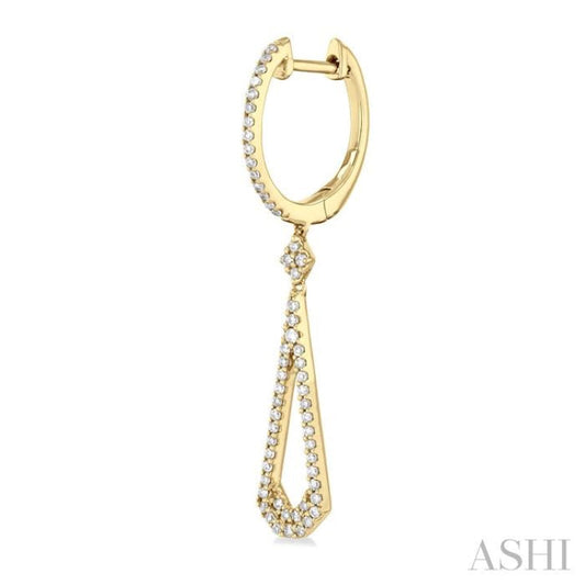1/3 Ctw Tear Drop Round Cut Diamond Long Earring in 10K Yellow Gold